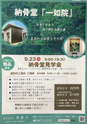 納骨堂の詳細については、HPメニューの「納骨堂一如院」をご覧ください。