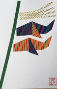 連休前にまたまたすてきなお便りがとどきました。東京都板橋区の真紀さんからです。子どもの日を控え、素晴らしい兜の貼り絵。後日はまた可愛らしい幼子の色紙も送られてきました。構図も色づかいも爽やかでとてもきれいですね。