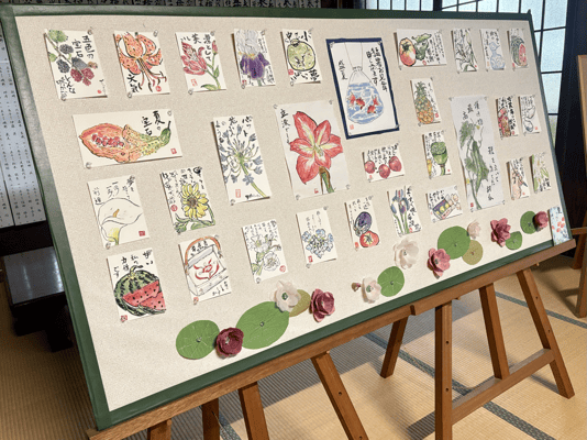 さて、今年も先日から本堂にて絵手紙の展示をしています。